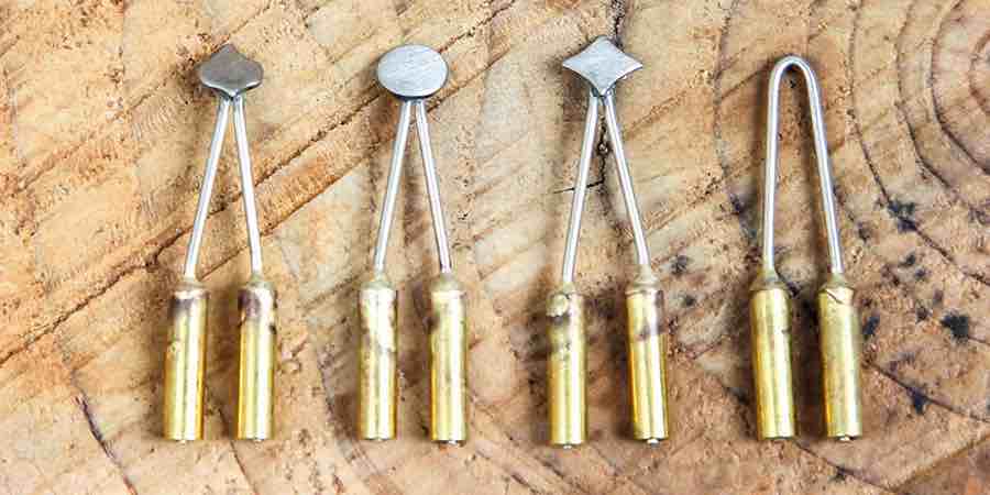Son puntas de metal fabricadas en bronce un tipo de aleación muy resistente al calor compuesto por bronce y estaño. Es un metal ideal para pirograbado ya que permite transmitir el calor y quemar bien la superficie del cuero y la madera. Hay que ser cautelosos porque la punta del pirograbador es peligrosa cuando está incandescente.
